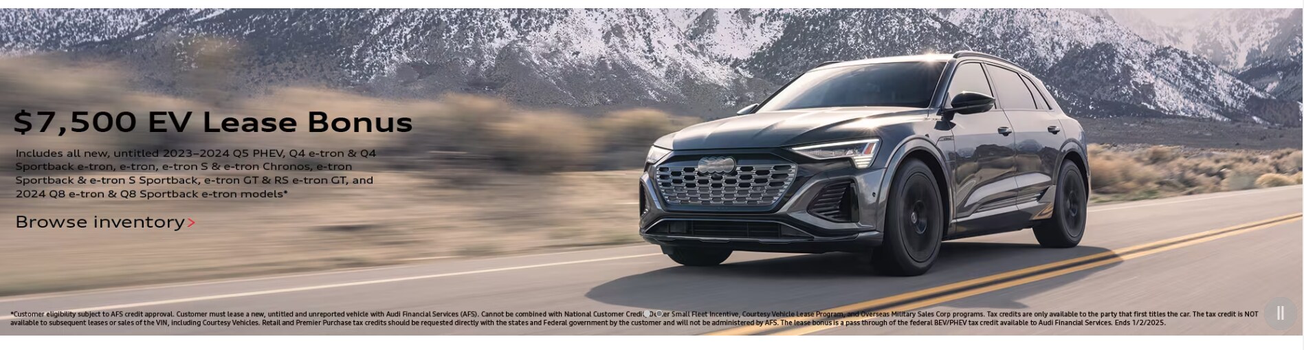 From daily commutes to spirited getaways, your ideal electric Audi beckons with unprecedented value. With the allure of a 7500-dollar lease bonus, the invitation to join the electric revolution has never been more enticing.