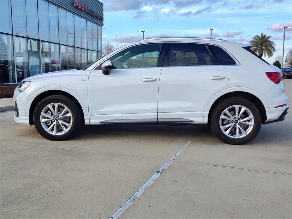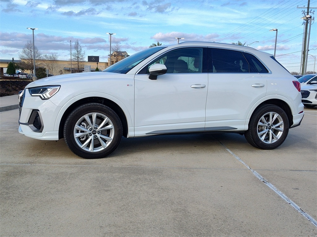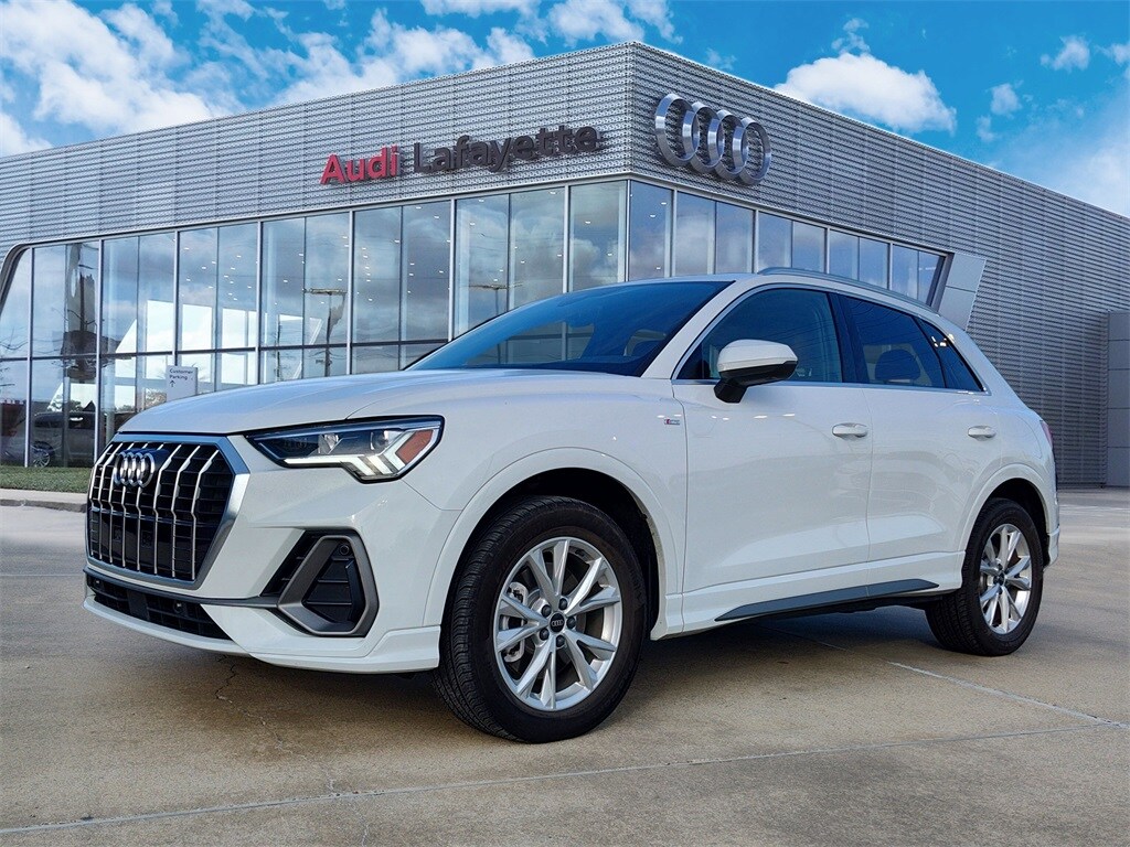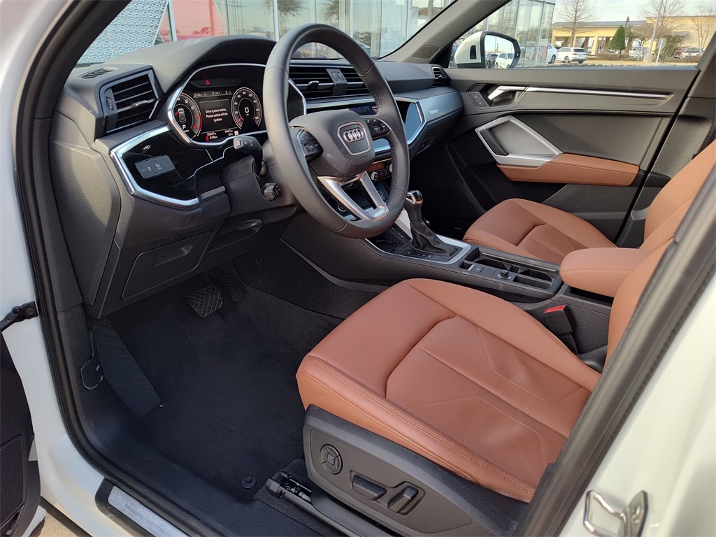 This 2025 Glacier White Audi Q3 Premium Plus AWD S Line quattro is well equipped and includes these features and benefits: Convenience Package (Alarm with Motion Sensor, Audi Advanced Key, Auto-Dimming Power-Folding Exterior Mirrors, Auto-Dimming Rear-View Mirror, Driver Seat Memory, Garage Door Opener (HomeLink), SiriusXM with 360L (3 Months Trial), and Wireless Phone Charging Pad), LED Interior Lighting Package, LED Interior Lighting Plus Package, Premium Plus Package (SONOS Premium Sound System with 3D Sound and Top View Camera System), Technology Package (12.3" Audi Virtual Cockpit Plus Screen, Alexa Integratio, Audi Connect NAV and PLUS, Audi MMI Navigation Plus, SiriusXM with 360L, Traffic Sign Recognition, and Wireless Apple CarPlay/Android Auto), 10 Speakers, Navigation System, 4-Wheel Disc Brakes, ABS brakes, Air Conditioning, Alloy wheels, AM/FM radio, Audi Beam-Rings, Audi Guard All-Weather Mats, Audi smartphone interface (Apple CarPlay/Android Auto), Auto High-beam Headlights, Automatic temperature control, Brake assist, Bumpers: body-color, Delay-off headlights, Driver door bin, Driver vanity mirror, Dual front impact airbags, Dual front side impact airbags, Electronic Stability Control, Emergency communication system: Audi connect CARE, Exterior Parking Camera Rear, Four wheel independent suspension, Front anti-roll bar, Front Bucket Seats, Front Center Armrest, Front dual zone A/C, Front fog lights, Front reading lights, Fully automatic headlights, Heated door mirrors, Heated Front Bucket Seats, Heated front seats, Illuminated entry, Knee airbag, Leather Seating Surfaces, Leather Shift Knob, Leather steering wheel, Low tire pressure warning, Occupant sensing airbag, Outside temperature display, Overhead airbag, Overhead console, Panic alarm, Passenger door bin, Passenger vanity mirror, Power door mirrors, Power driver seat, Power Liftgate, Power moonroof: Panoramic, Power passenger seat, Power steering, Power windows, Radio data system, Radio: Audi Sound System, Rain sensing wipers, Rear air conditioning, Rear anti-roll bar, Rear reading lights, Rear seat center armrest, Rear window defroster, Rear window wiper, Remote keyless entry, Speed control, Speed-sensing steering, Split folding rear seat, Spoiler, Steering wheel mounted audio controls, Tachometer, Telescoping steering wheel, Tilt steering wheel, Traction control, Trip computer, Turn signal indicator mirrors, Variably intermittent wipers, and Wheels: 18" 5-V-Spoke-S Design.