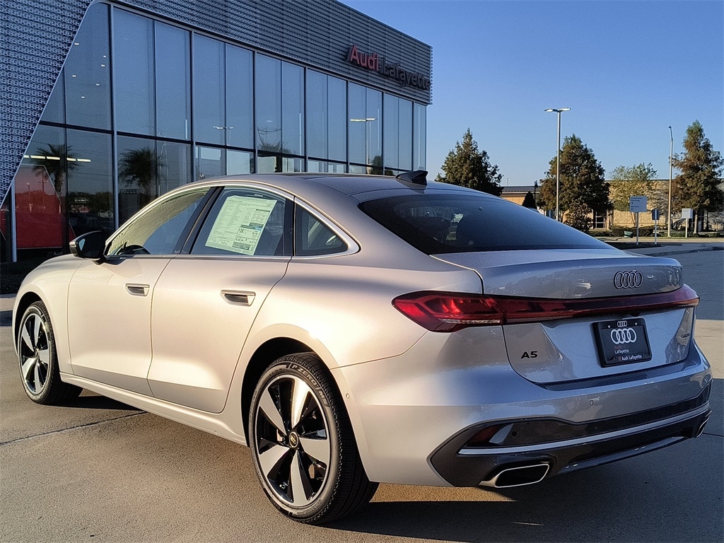 This NEW 2025 Florett Silver Metallic Audi A5 quattro 2.0L 4-Cylinder TFSI 7-Speed Automatic S tronic AWD is well equipped and includes these features and benefits: 19" Wheel Package (Wheels: 19" 5-Arm-Aero Design Bi-Color Finish), LED Interior Lighting Pro Package, Prestige (7 Additional Digital DRL Signatures, Acoustic Front Door Glass, Adaptive Cruise Assist, Animation For Taillights, Bang & Olufsen Front Headrest Speakers, Bang & Olufsen Sound System with 3D Sound, Digital OLED Taillights, Dynamic Interaction Light, Head-Up Display, Headlight Washers, Heated and Ventilated Front Sport Seats, Heated Rear Seats, Heated Steering Wheel with Hands-on Detection, LED Headlights Plus with Digital DRL, Manual Rear Side Window Sunshades, Matrix Design LED Headlights, MMI Passenger Display with 10.9" Screen, Panoramic Glass with Variable Light Control, Park Assist Plus, Top View Camera System, and USB Power Delivery (2x60W Front and 2x100W Rear)), 10 Speakers, 4-Wheel Disc Brakes, ABS brakes, Air Conditioning, All-Weather Floor Mats, Alloy wheels, AM/FM radio: SiriusXM w/360L, Anti-whiplash front head restraints, Audi Beam-Rings, Auto High-beam Headlights, Auto-dimming door mirrors, Auto-dimming Rear-View mirror, Automatic temperature control, Brake assist, Bumpers: body-color, Cargo Mat, Compass, Delay-off headlights, Driver door bin, Driver vanity mirror, Dual front impact airbags, Dual front side impact airbags, Electronic Stability Control, Emergency communication system: Audi connect CARE, Exterior Parking Camera Rear, Four wheel independent suspension, Front anti-roll bar, Front Bucket Seats, Front Center Armrest, Front dual zone A/C, Front fog lights, Front reading lights, Garage door transmitter: HomeLink, Genuine wood dashboard insert, Genuine wood door panel insert, Heated door mirrors, Heated Front Bucket Seats, Heated front seats, Illuminated entry, Knee airbag, Leather Seating Surfaces, Leather steering wheel, Low tire pressure warning, Memory seat, Navigation system: MMI Navigation plus, Occupant sensing airbag, Outside temperature display, Overhead airbag, Overhead console, Panic alarm, Passenger door bin, Passenger vanity mirror, Power adjustable front head restraints, Power door mirrors, Power driver seat, Power Liftgate, Power passenger seat, Power steering, Power windows, Radio data system, Radio: Audi Sound System, Rain sensing wipers, Rear air conditioning, Rear anti-roll bar, Rear reading lights, Rear seat center armrest, Rear window defroster, Remote keyless entry, Security system, Speed control, Speed-sensing steering, Speed-Sensitive Wipers, Split folding rear seat, Steering wheel mounted audio controls, Tachometer, Telescoping steering wheel, Tilt steering wheel, Traction control, Trip computer, Turn signal indicator mirrors, Variably intermittent wipers, and Wheels: 18" 5-Arm-Twist Design.