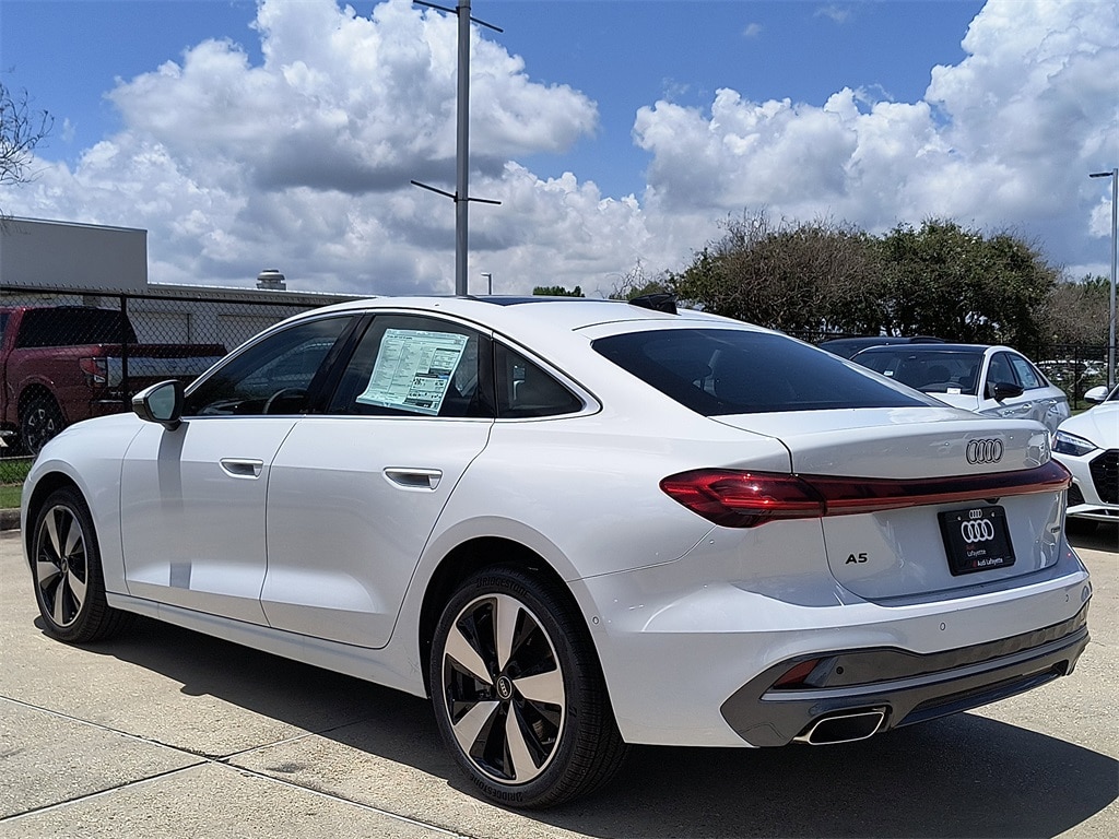 This NEW 2025 Glacier White Metallic Audi A5 quattro 2.0L 4-Cylinder TFSI 7-Speed Automatic S tronic AWD is well equipped and includes these features and benefits: 19" Wheel Package (Wheels: 19" 5-Arm-Aero Design Bi-Color Finish), LED Interior Lighting Pro Package, Prestige (7 Additional Digital DRL Signatures, Acoustic Front Door Glass, Adaptive Cruise Assist, Animation For Taillights, Bang & Olufsen Front Headrest Speakers, Bang & Olufsen Sound System with 3D Sound, Digital OLED Taillights, Dynamic Interaction Light, Head-Up Display, Headlight Washers, Heated and Ventilated Front Sport Seats, Heated Rear Seats, Heated Steering Wheel with Hands-on Detection, LED Headlights Plus with Digital DRL, Manual Rear Side Window Sunshades, Matrix Design LED Headlights, MMI Passenger Display with 10.9" Screen, Panoramic Glass with Variable Light Control, Park Assist Plus, Top View Camera System, and USB Power Delivery (2x60W Front and 2x100W Rear)), 10 Speakers, 4-Wheel Disc Brakes, ABS brakes, Air Conditioning, Alloy wheels, AM/FM radio: SiriusXM w/360L, Anti-whiplash front head restraints, Auto High-beam Headlights, Auto-dimming door mirrors, Auto-dimming Rear-View mirror, Automatic temperature control, Brake assist, Bumpers: body-color, Compass, Delay-off headlights, Driver door bin, Driver vanity mirror, Dual front impact airbags, Dual front side impact airbags, Electronic Stability Control, Emergency communication system: Audi connect CARE, Exterior Parking Camera Rear, Four wheel independent suspension, Front anti-roll bar, Front Bucket Seats, Front Center Armrest, Front dual zone A/C, Front fog lights, Front reading lights, Garage door transmitter: HomeLink, Genuine wood dashboard insert, Genuine wood door panel insert, Heated door mirrors, Heated Front Bucket Seats, Heated front seats, Illuminated entry, Knee airbag, Leather Seating Surfaces, Leather steering wheel, Low tire pressure warning, Memory seat, Navigation system: MMI Navigation plus, Occupant sensing airbag, Outside temperature display, Overhead airbag, Overhead console, Panic alarm, Passenger door bin, Passenger vanity mirror, Power adjustable front head restraints, Power door mirrors, Power driver seat, Power Liftgate, Power passenger seat, Power steering, Power windows, Radio data system, Radio: Audi Sound System, Rain sensing wipers, Rear air conditioning, Rear anti-roll bar, Rear reading lights, Rear seat center armrest, Rear window defroster, Remote keyless entry, Security system, Speed control, Speed-sensing steering, Speed-Sensitive Wipers, Split folding rear seat, Steering wheel mounted audio controls, Tachometer, Telescoping steering wheel, Tilt steering wheel, Traction control, Trip computer, Turn signal indicator mirrors, Variably intermittent wipers, and Wheels: 18" 5-Arm-Twist Design.