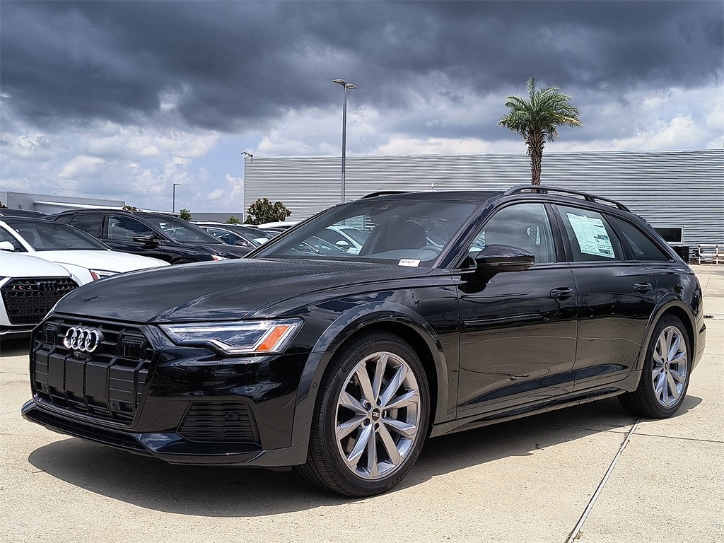 This NEW 2025 Mythos Black Metallic Audi A6 allroad Premium Plus quattro 3.0L V6 Turbocharged DOHC 24V LEV3-ULEV70 335hp 7-Speed Automatic AWD is well equipped and includes these features and benefits: Black Optic Package (Black Exterior Trim, Black Roof Rails, and Manhattan Gray Contrast Paint), Driver Assistance Package (Adaptive Cruise Assist with Lane Guidance and Audi Side Assist with Pre Sense Rear), 16 Speakers, 4-Wheel Disc Brakes, ABS brakes, Adaptive suspension, Air Conditioning, Alloy wheels, AM/FM radio: SiriusXM w/360L, Audi Guard All-Weather Mats, Auto High-beam Headlights, Auto tilt-away steering wheel, Auto-dimming door mirrors, Auto-dimming Rear-View mirror, Auto-leveling suspension, Automatic temperature control, Bang & Olufsen Premium Sound System with 3D Sound, Brake assist, Bumpers: body-color, Compass, Delay-off headlights, Driver door bin, Driver vanity mirror, Dual front impact airbags, Dual front side impact airbags, Electronic Stability Control, Emergency communication system: Audi connect CARE (limited time subscription - acceptance of terms required), Exterior Parking Camera Rear, Four wheel independent suspension, Front anti-roll bar, Front Bucket Seats, Front Center Armrest, Front dual zone A/C, Front fog lights, Front reading lights, Garage door transmitter: HomeLink, Genuine wood console insert, Genuine wood dashboard insert, Genuine wood door panel insert, Headlight cleaning, Heated and Ventilated Front Seats, Heated door mirrors, Heated front seats, Heated rear seats, Heated steering wheel, Illuminated entry, Knee airbag, Leather Seating Surfaces, Leather Shift Knob, Leather steering wheel, Low tire pressure warning, Memory seat, Navigation system: Audi MMI Navigation plus with Touch Response, Occupant sensing airbag, Outside temperature display, Overhead airbag, Overhead console, Panic alarm, Passenger door bin, Passenger vanity mirror, Power door mirrors, Power driver seat, Power Liftgate, Power moonroof, Power passenger seat, Power steering, Power windows, Radio data system, Radio: Audi MMI Navigation Plus with MMI Touch Response, Rain sensing wipers, Rear air conditioning, Rear anti-roll bar, Rear dual zone A/C, Rear reading lights, Rear seat center armrest, Rear side impact airbag, Rear window defroster, Rear window wiper, Remote keyless entry, Security system, Speed control, Speed-sensing steering, Speed-Sensitive Wipers, Split folding rear seat, Spoiler, Steering wheel memory, Steering wheel mounted audio controls, Tachometer, Telescoping steering wheel, Tilt steering wheel, Traction control, Trip computer, Turn signal indicator mirrors, Variably intermittent wipers, Ventilated front seats, and Wheels: 20" Platinum Gray Finish 10-V-Spoke Design.