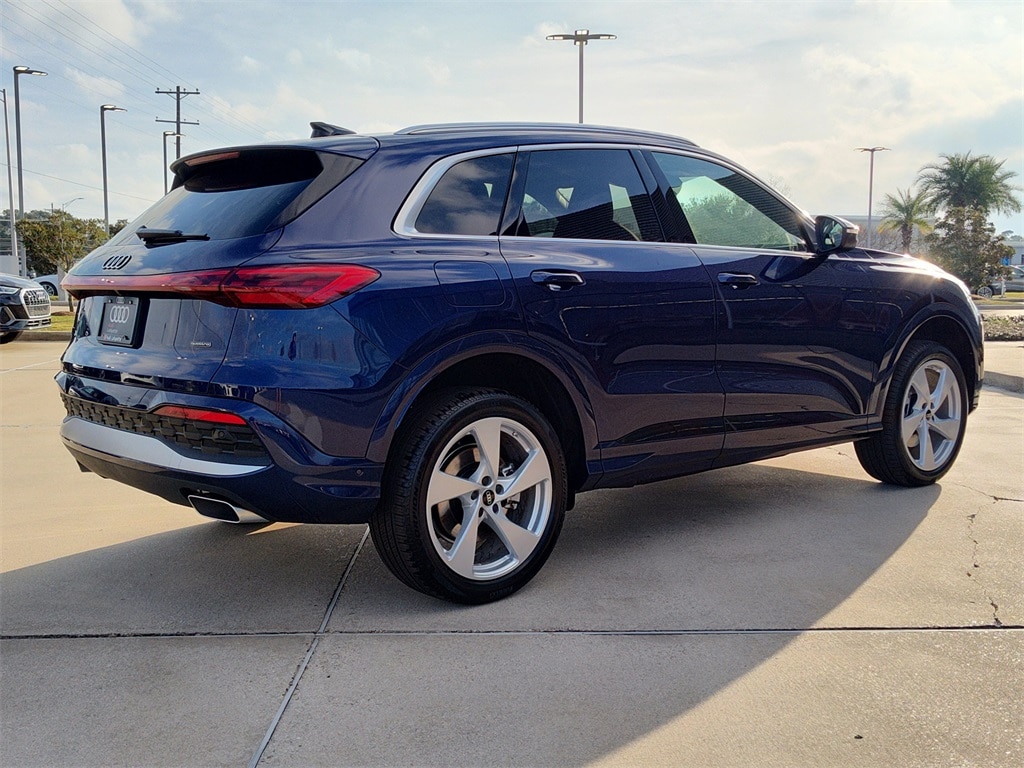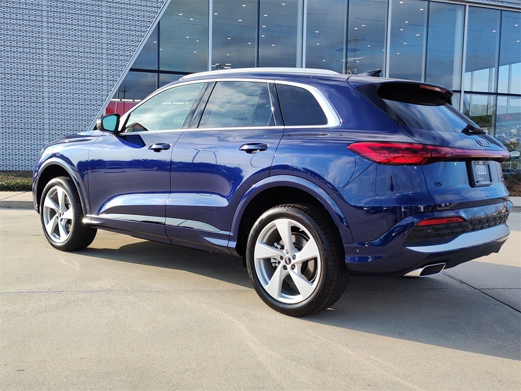 This NEW 2025 Navarra Blue Metallic Audi Q5 2.0T Premium Plus quattro 2.0L 4-Cylinder TFSI 7-Speed Automatic S tronic AWD is well equipped and includes these features and benefits: 20" Wheel Package with 5-Arm Design (Wheels: 20" 5-Arm Design), Brown Warm Weather Package (Light Brown Walnut Trunk Natural Wood Inlays, Manual Rear Side Window Sunshades, and Ventilated Front Sport Seats), LED Interior Lighting Pro Package, Premium Plus (Adaptive Cruise Assist, Animation For Headlights and Taillights, Bang & Olufsen Sound System with 3D Sound, Dynamic Interaction Light, Head-Up Display, Headlight Washers, Heated Steering Wheel with Hands-on Detection, LED Headlights Plus with Digital DRL, Panoramic Sunroof, Top View Camera System, USB Power Delivery (2x60W Front and 2x100W Rear), and Wheels: 19" 5-Double-Spoke Design), 10 Speakers, 4-Wheel Disc Brakes, ABS brakes, Air Conditioning, Alloy wheels, AM/FM radio: SiriusXM w/360L, Audi Beam-Rings, Audi Guard Protection Kit, Auto High-beam Headlights, Auto tilt-away steering wheel, Auto-dimming door mirrors, Auto-dimming Rear-View mirror, Automatic temperature control, Brake assist, Bumpers: body-color, Compass, Delay-off headlights, Driver door bin, Driver vanity mirror, Dual front impact airbags, Dual front side impact airbags, Electronic Stability Control, Emergency communication system: Audi connect CARE, Exterior Parking Camera Rear, Four wheel independent suspension, Front anti-roll bar, Front Bucket Seats, Front Center Armrest, Front dual zone A/C, Front fog lights, Front reading lights, Garage door transmitter: HomeLink, Genuine wood console insert, Genuine wood dashboard insert, Genuine wood door panel insert, Heated door mirrors, Heated Front Bucket Seats, Heated front seats, Illuminated entry, Leather Seating Surfaces, Leather steering wheel, Low tire pressure warning, Memory seat, Navigation system: Audi Navigation Plus, Occupant sensing airbag, Outside temperature display, Overhead airbag, Overhead console, Panic alarm, Passenger door bin, Passenger vanity mirror, Power door mirrors, Power driver seat, Power Liftgate, Power passenger seat, Power steering, Power windows, Privacy Trunk Cover, Radio data system, Radio: MMI Navigation Plus, Rain sensing wipers, Rear air conditioning, Rear anti-roll bar, Rear fog lights, Rear reading lights, Rear seat center armrest, Rear window defroster, Rear window wiper, Remote keyless entry, Roof rack, Security system, Speed control, Speed-sensing steering, Speed-Sensitive Wipers, Split folding rear seat, Spoiler, Steering wheel mounted audio controls, Tachometer, Telescoping steering wheel, Tilt steering wheel, Traction control, Trip computer, Turn signal indicator mirrors, Variably intermittent wipers, and Wheels: 18" 5-Arm-Twist Design.