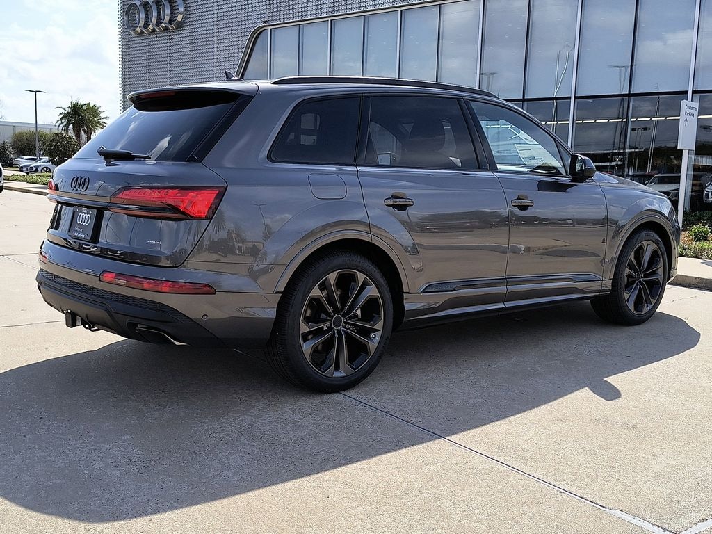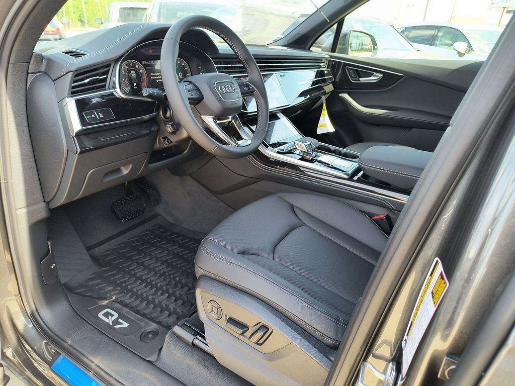 This NEW 2026 Samurai Gray Metallic Audi Q7 55 Premium Plus quattro 3.0L TFSI 8-Speed Automatic with Tiptronic AWD is well equipped and includes these features and benefits: Black Optic Package (Anthracite Gray Audi Rings, Black Door Blades, Black Exterior Trim, Black Grille, Black Roof Rails, Black Wheel Center Caps, Black Window Surrounds, Dark Chrome Exhaust Tips, and Wheels: 21" 5-Double-Spoke-Module-Design with Matte Gray Finish), LED Interior Lighting Plus Package, Premium Plus Package (4-Way Power Lumbar For Passenger Seat, Adaptive Air Suspension, Bang & Olufsen Premium Sound System with 3D Sound, Control Buttons in Gloss Black with Haptic Feedback, Dual-Pane Acoustic Glass For Side Windows, Four-Zone Automatic Climate Control, Heated Rear Seats, Heated Steering Wheel, Illuminated Door Sills, Power Soft-Closing Doors, Rear Door/Side Windows and Tailgate Sunshades, Top View Camera System with Virtual 360 View, Ventilation For Front Seats, and Wheels: 20" 5-Double-Spoke), 10 Speakers, 3rd row seats: bench, 4-Wheel Disc Brakes, 7-Pin Adapter, 7700 lbs Towing Capacity, ABS brakes, Air Conditioning, Alloy wheels, AM/FM radio: SiriusXM with 360L, Audi Guard Protection Kit, Auto High-beam Headlights, Auto-dimming door mirrors, Auto-dimming Rear-View mirror, Automatic temperature control, Brake assist, Bumpers: body-color, Compass, Delay-off headlights, Driver door bin, Driver vanity mirror, Dual front impact airbags, Dual front side impact airbags, Electronic Stability Control, Emergency communication system: Audi connect CARE, Exterior Parking Camera Rear, Four wheel independent suspension, Front anti-roll bar, Front Bucket Seats, Front Center Armrest, Front dual zone A/C, Front fog lights, Front reading lights, Fully automatic headlights, Garage door transmitter: HomeLink, Genuine wood door panel insert, Heated door mirrors, Heated Front Bucket Seats, Heated front seats, Illuminated entry, Leather Seating Surfaces, Leather Shift Knob, Leather steering wheel, Low tire pressure warning, Memory seat, Navigation system: Audi MMI Navigation plus with Touch Response, Occupant sensing airbag, Outside temperature display, Overhead airbag, Overhead console, Panic alarm, Passenger door bin, Passenger vanity mirror, Power door mirrors, Power driver seat, Power Liftgate, Power moonroof: Panoramic, Power passenger seat, Power steering, Power windows, Privacy Trunk Cover, Radio data system, Radio: Audi Sound System, Rain sensing wipers, Rear air conditioning, Rear anti-roll bar, Rear fog lights, Rear reading lights, Rear seat center armrest, Rear side impact airbag, Rear window defroster, Rear window wiper, Reclining 3rd row seat, Remote keyless entry, Security system, Speed control, Speed-sensing steering, Split folding rear seat, Spoiler, Steering wheel memory, Steering wheel mounted audio controls, Tachometer, Telescoping steering wheel, Tilt steering wheel, Traction control, Trailer Hitch, Trip computer, Turn signal indicator mirrors, Variably intermittent wipers, and Wheels: 19" 5-Arm-Star Design.