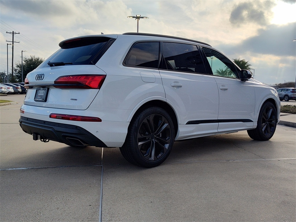 This NEW 2026 glacier white metallic Audi Q7 55 Premium Plus quattro 3.0L TFSI 8-Speed Automatic with Tiptronic AWD is well equipped and includes these features and benefits: Black Optic Package (Anthracite Gray Audi Rings, Black Door Blades, Black Exterior Trim, Black Grille, Black Roof Rails, Black Wheel Center Caps, Black Window Surrounds, Dark Chrome Exhaust Tips, and Wheels: 21" 5-Double-Spoke-Module-Design with Matte Gray Finish), LED Interior Lighting Plus Package, Premium Plus Package (4-Way Power Lumbar For Passenger Seat, Adaptive Air Suspension, Bang & Olufsen Premium Sound System with 3D Sound, Control Buttons in Gloss Black with Haptic Feedback, Dual-Pane Acoustic Glass For Side Windows, Four-Zone Automatic Climate Control, Heated Rear Seats, Heated Steering Wheel, Illuminated Door Sills, Power Soft-Closing Doors, Rear Door/Side Windows and Tailgate Sunshades, Top View Camera System with Virtual 360 View, Ventilation For Front Seats, and Wheels: 20" 5-Double-Spoke), 10 Speakers, 3rd row seats: bench, 4-Wheel Disc Brakes, 7-Pin Adapter, 7700 lbs Towing Capacity, ABS brakes, Air Conditioning, Alloy wheels, AM/FM radio, Audi Beam Rings, Audi Guard Protection Kit, Auto High-beam Headlights, Auto-dimming door mirrors, Auto-dimming Rear-View mirror, Automatic temperature control, Brake assist, Bumpers: body-color, Compass, Delay-off headlights, Driver door bin, Driver vanity mirror, Dual front impact airbags, Dual front side impact airbags, Electronic Stability Control, Emergency communication system: Audi connect CARE, Exterior Parking Camera Rear, Four wheel independent suspension, Front anti-roll bar, Front Bucket Seats, Front Center Armrest, Front dual zone A/C, Front fog lights, Front reading lights, Fully automatic headlights, Garage door transmitter: HomeLink, Genuine wood door panel insert, Heated door mirrors, Heated Front Bucket Seats, Heated front seats, Illuminated entry, Leather Seating Surfaces, Leather Shift Knob, Leather steering wheel, Low tire pressure warning, Memory seat, Navigation system: Audi MMI Navigation plus with Touch Response, Occupant sensing airbag, Outside temperature display, Overhead airbag, Overhead console, Panic alarm, Passenger door bin, Passenger vanity mirror, Power door mirrors, Power driver seat, Power Liftgate, Power moonroof: Panoramic, Power passenger seat, Power steering, Power windows, Privacy Trunk Cover, Radio data system, Radio: Audi Sound System, Rain sensing wipers, Rear air conditioning, Rear anti-roll bar, Rear fog lights, Rear reading lights, Rear seat center armrest, Rear side impact airbag, Rear window defroster, Rear window wiper, Reclining 3rd row seat, Remote keyless entry, Security system, Speed control, Speed-sensing steering, Split folding rear seat, Spoiler, Steering wheel memory, Steering wheel mounted audio controls, Tachometer, Telescoping steering wheel, Tilt steering wheel, Traction control, Trailer Hitch, Trip computer, Turn signal indicator mirrors, Variably intermittent wipers, and Wheels: 19" 5-Arm-Star Design.