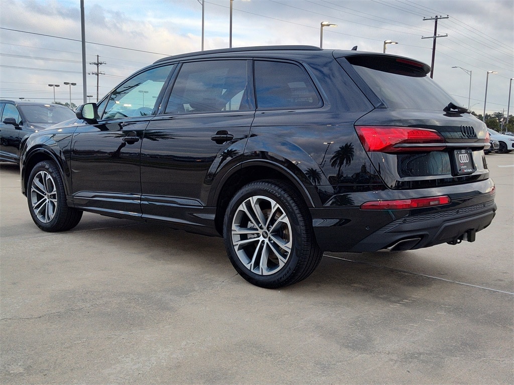 This NEW 2026 mythos black metallic Audi Q7 45 Premium quattro 2.0L 4-Cylinder TFSI 8-Speed Automatic with Tiptronic AWD is well equipped and includes these features and benefits: Convenience Plus Package (4-Way Power Lumbar For Passenger Seat, Anthracite Gray Audi Rings, Bang & Olufsen Premium Sound System with 3D Sound, Black Door Blades, Black Exterior Trim, Black Grille, Black Roof Rails, Black Window Surrounds, Dark Chrome Exhaust Tips, Heated Steering Wheel, Top View Camera System with Virtual 360 View, and Wheels: 20" 5-Double-Spoke with Bicolor Finish), LED Interior Lighting Plus Package, 10 Speakers, 3rd row seats: bench, 4-Wheel Disc Brakes, 4400 lbs Towing Capacity, 7-Pin Adapter, ABS brakes, Air Conditioning, Alloy wheels, AM/FM radio, Audi Beam Rings, Audi Guard Protection Kit, Auto High-beam Headlights, Auto-dimming door mirrors, Auto-dimming Rear-View mirror, Automatic temperature control, Brake assist, Bumpers: body-color, Compass, Delay-off headlights, Driver door bin, Driver vanity mirror, Dual front impact airbags, Dual front side impact airbags, Electronic Stability Control, Emergency communication system: Audi connect CARE, Exterior Parking Camera Rear, Four wheel independent suspension, Front anti-roll bar, Front Bucket Seats, Front Center Armrest, Front dual zone A/C, Front fog lights, Front reading lights, Fully automatic headlights, Garage door transmitter: HomeLink, Genuine wood door panel insert, Heated door mirrors, Heated Front Bucket Seats, Heated front seats, Illuminated entry, Leather Seating Surfaces, Leather Shift Knob, Leather steering wheel, Low tire pressure warning, Memory seat, Navigation system: Audi MMI Navigation plus with Touch Response, Occupant sensing airbag, Outside temperature display, Overhead airbag, Overhead console, Panic alarm, Passenger door bin, Passenger vanity mirror, Power door mirrors, Power driver seat, Power Liftgate, Power moonroof: Panoramic, Power passenger seat, Power Soft-Closing Doors, Power steering, Power windows, Privacy Trunk Cover, Radio data system, Radio: Audi Sound System, Rain sensing wipers, Rear air conditioning, Rear anti-roll bar, Rear fog lights, Rear reading lights, Rear seat center armrest, Rear side impact airbag, Rear window defroster, Rear window wiper, Reclining 3rd row seat, Remote keyless entry, Security system, Speed control, Speed-sensing steering, Split folding rear seat, Spoiler, Steering wheel memory, Steering wheel mounted audio controls, Tachometer, Telescoping steering wheel, Tilt steering wheel, Traction control, Trailer Hitch, Trip computer, Turn signal indicator mirrors, Variably intermittent wipers, and Wheels: 19" 5-Arm-Star Design.
