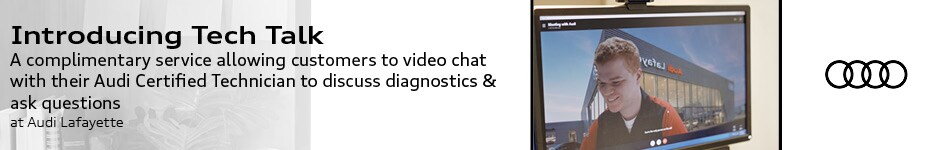 You know Audi Lafayette as your source for a world-class automotive experience featuring a state-of-the-art service center equipped with the latest technology and competitive pricing. We are now proud to be one of the first dealers in Acadiana to offer "Tech Talk."