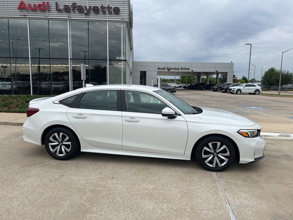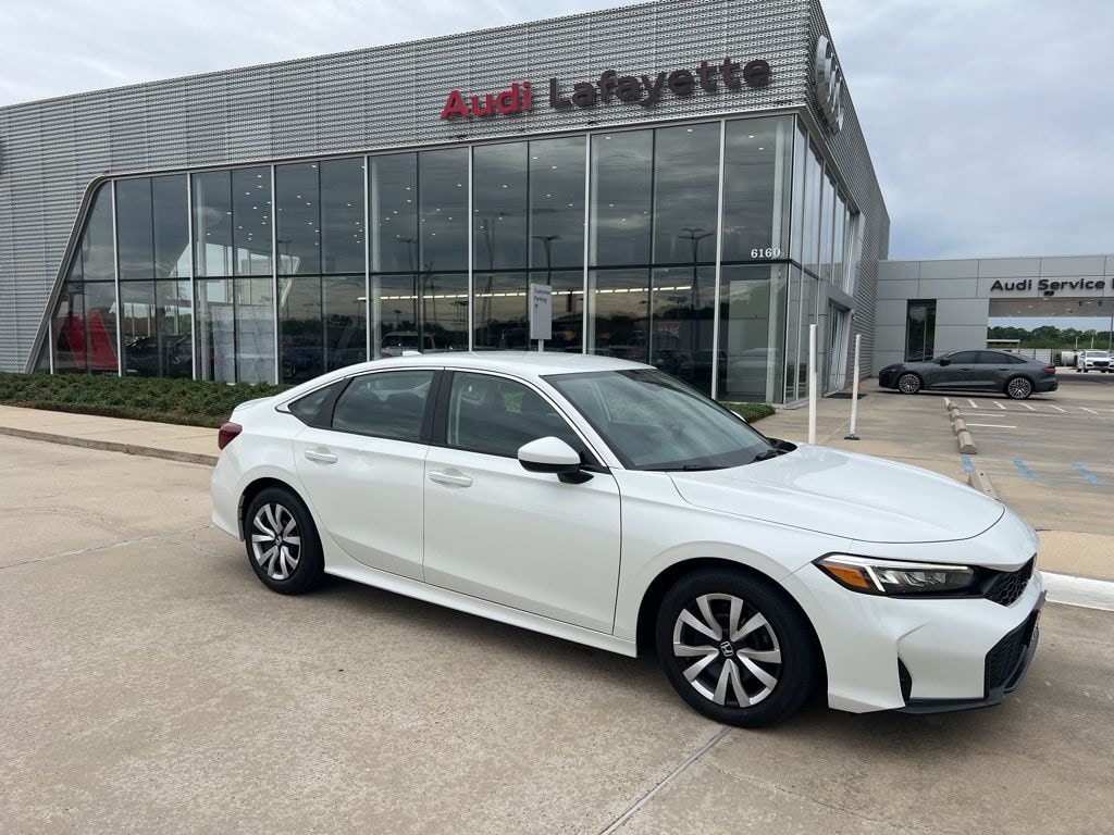This 2025 Honda Civic LX FWD is well equipped and includes these features and benefits: 16" Wheels w/Full Covers, 4 Speakers, 4-Wheel Disc Brakes, ABS brakes, Adaptive Cruise Control: Adaptive Cruise Control (ACC) with Low-Speed Follow, Air Conditioning, AM/FM radio, Apple CarPlay/Android Auto, Auto High-beam Headlights, Automatic temperature control, Brake assist, Bumpers: body-color, Cloth Seating Surfaces, Delay-off headlights, Driver door bin, Driver vanity mirror, Dual front impact airbags, Dual front side impact airbags, Electronic Stability Control, Emergency communication system: HondaLink, Exterior Parking Camera Rear, Four wheel independent suspension, Front anti-roll bar, Front Bucket Seats, Front Center Armrest, Front reading lights, Fully automatic headlights, Illuminated entry, Knee airbag, Low tire pressure warning, Occupant sensing airbag, Outside temperature display, Overhead airbag, Panic alarm, Passenger door bin, Passenger vanity mirror, Power door mirrors, Power steering, Power windows, Radio data system, Radio: 160-Watt Audio System, Rear anti-roll bar, Rear side impact airbag, Rear window defroster, Remote keyless entry, Security system, Speed control, Speed-sensing steering, Steering wheel mounted audio controls, Tachometer, Telescoping steering wheel, Tilt steering wheel, Traction control, and Trip computer.