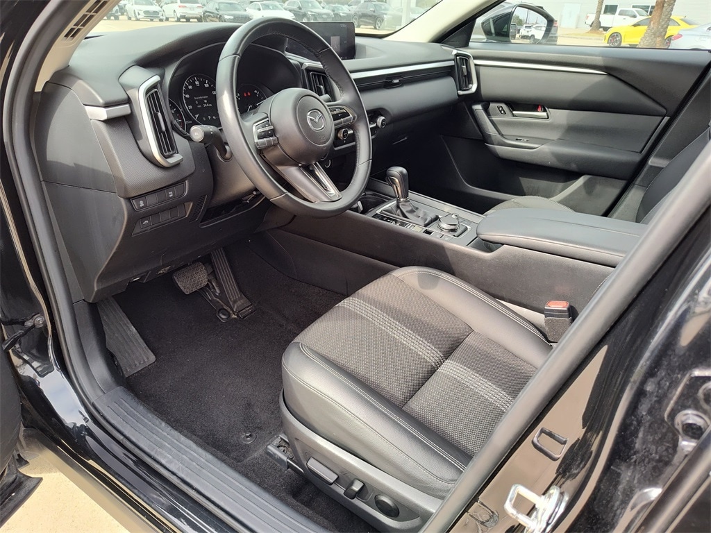 This 2025 Jet Black Mica Mazda CX-50 2.5 S Preferred Package AWD is well equipped and includes these features and benefits: 4-Wheel Disc Brakes, 8 Speakers, ABS brakes, Air Conditioning, Alloy wheels, AM/FM radio, AppLink/Apple CarPlay and Android Auto, Auto High-beam Headlights, Automatic temperature control, Brake assist, Bumpers: body-color, Delay-off headlights, Driver door bin, Driver vanity mirror, Dual front impact airbags, Dual front side impact airbags, Electronic Stability Control, Emergency communication system: MAZDA CONNECT, Exterior Parking Camera Rear, Front anti-roll bar, Front Bucket Seats, Front Center Armrest, Front dual zone A/C, Front reading lights, Front wheel independent suspension, Fully automatic headlights, Half Leatherette Seat Trim, Heated door mirrors, Heated Front Bucket Seats, Heated front seats, Illuminated entry, Knee airbag, Leather Shift Knob, Leather steering wheel, Low tire pressure warning, Occupant sensing airbag, Outside temperature display, Overhead airbag, Overhead console, Panic alarm, Passenger door bin, Passenger vanity mirror, Power door mirrors, Power driver seat, Power Liftgate, Power steering, Power windows, Radio data system, Radio: AM/FM/HD 8-Speaker Audio Sound System, Rain sensing wipers, Rear seat center armrest, Rear window defroster, Rear window wiper, Remote keyless entry, Speed control, Speed-sensing steering, Split folding rear seat, Spoiler, Steering wheel mounted audio controls, Tachometer, Telescoping steering wheel, Tilt steering wheel, Traction control, Trip computer, Turn signal indicator mirrors, Variably intermittent wipers, and Wheels: 17" x 7J Aluminum Alloy Black Metallic Finish.