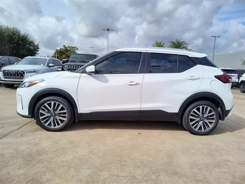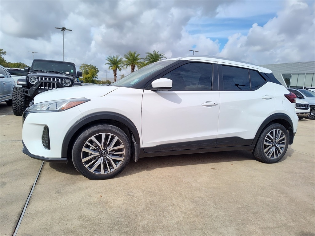 This 2023 Fresh Powder Nissan Kicks SV FWD is well equipped and includes these features and benefits: 17" Alloy Wheels, 3.93 Axle Ratio, 4-Wheel Disc Brakes, 6 Speakers, ABS brakes, Air Conditioning, Alloy wheels, AM/FM radio: SiriusXM, Apple CarPlay/Android Auto, Auto High-beam Headlights, Blind Spot Warning, Brake assist, Bumpers: body-color, Carpeted Floor Mats w/Cargo Mat, Cloth Seat Trim, Driver door bin, Driver vanity mirror, Dual front impact airbags, Dual front side impact airbags, Electronic Stability Control, Front anti-roll bar, Front Bucket Seats, Front Center Armrest, Front reading lights, Front wheel independent suspension, Fully automatic headlights, Heated door mirrors, Illuminated entry, Knee airbag, Low tire pressure warning, Occupant sensing airbag, Outside temperature display, Overhead airbag, Panic alarm, Passenger door bin, Passenger vanity mirror, Power door mirrors, Power steering, Power windows, Radio data system, Radio: AM/FM Audio System, Rear Parking Sensors, Rear reading lights, Rear side impact airbag, Rear window defroster, Rear window wiper, Remote keyless entry, Speed control, Splash Guards Grain (4 Piece), Split folding rear seat, Sport steering wheel, Steering wheel mounted audio controls, Tachometer, Telescoping steering wheel, Tilt steering wheel, Traction control, Trip computer, and Variably intermittent wipers.