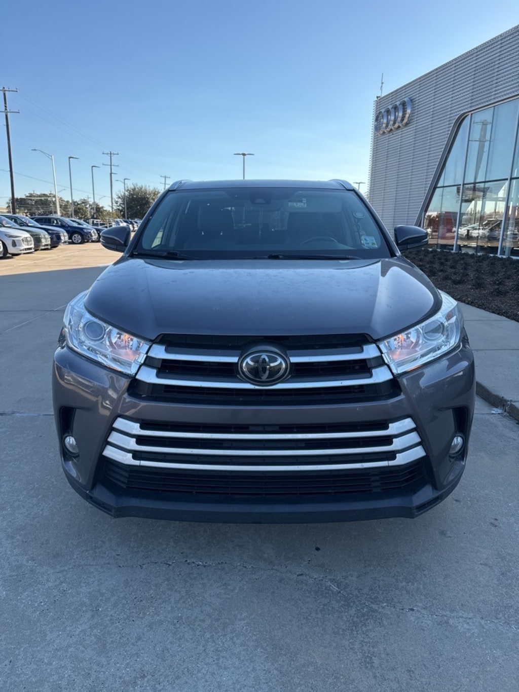 This 2019 Gray Toyota Highlander SE FWD is well equipped and includes these features and benefits: 3.003 Axle Ratio, 3rd row seats: split-bench, 4-Wheel Disc Brakes, 6 Speakers, ABS brakes, Air Conditioning, Alloy wheels, AM/FM radio: SiriusXM, Auto High-beam Headlights, Auto-dimming Rear-View mirror, Automatic temperature control, Black Roof Rails, Brake assist, Bumpers: body-color, CD player, Delay-off headlights, Driver door bin, Driver vanity mirror, Dual front impact airbags, Dual front side impact airbags, Electronic Stability Control, Exterior Parking Camera Rear, Four wheel independent suspension, Front anti-roll bar, Front Bucket Seats, Front Center Armrest, Front dual zone A/C, Front fog lights, Front reading lights, Fully automatic headlights, Garage door transmitter, Heated door mirrors, Heated Front Bucket Seats, Heated front seats, Illuminated entry, Knee airbag, Leather Seat Trim, Leather Shift Knob, Low tire pressure warning, Navigation System, Occupant sensing airbag, Outside temperature display, Overhead airbag, Overhead console, Panic alarm, Passenger door bin, Passenger vanity mirror, Power door mirrors, Power driver seat, Power Liftgate, Power moonroof, Power passenger seat, Power steering, Power windows, Radio: Entune Premium Audio w/Nav & App Suite, Rear air conditioning, Rear anti-roll bar, Rear reading lights, Rear window defroster, Rear window wiper, Reclining 3rd row seat, Remote keyless entry, Roof rack: rails only, Security system, Speed control, Speed-sensing steering, Split folding rear seat, Spoiler, Steering wheel mounted audio controls, Tachometer, Telescoping steering wheel, Tilt steering wheel, Traction control, Trip computer, Turn signal indicator mirrors, Variably intermittent wipers, and Wheels: 19" Multi-Spoke Machined-Face Alloy.