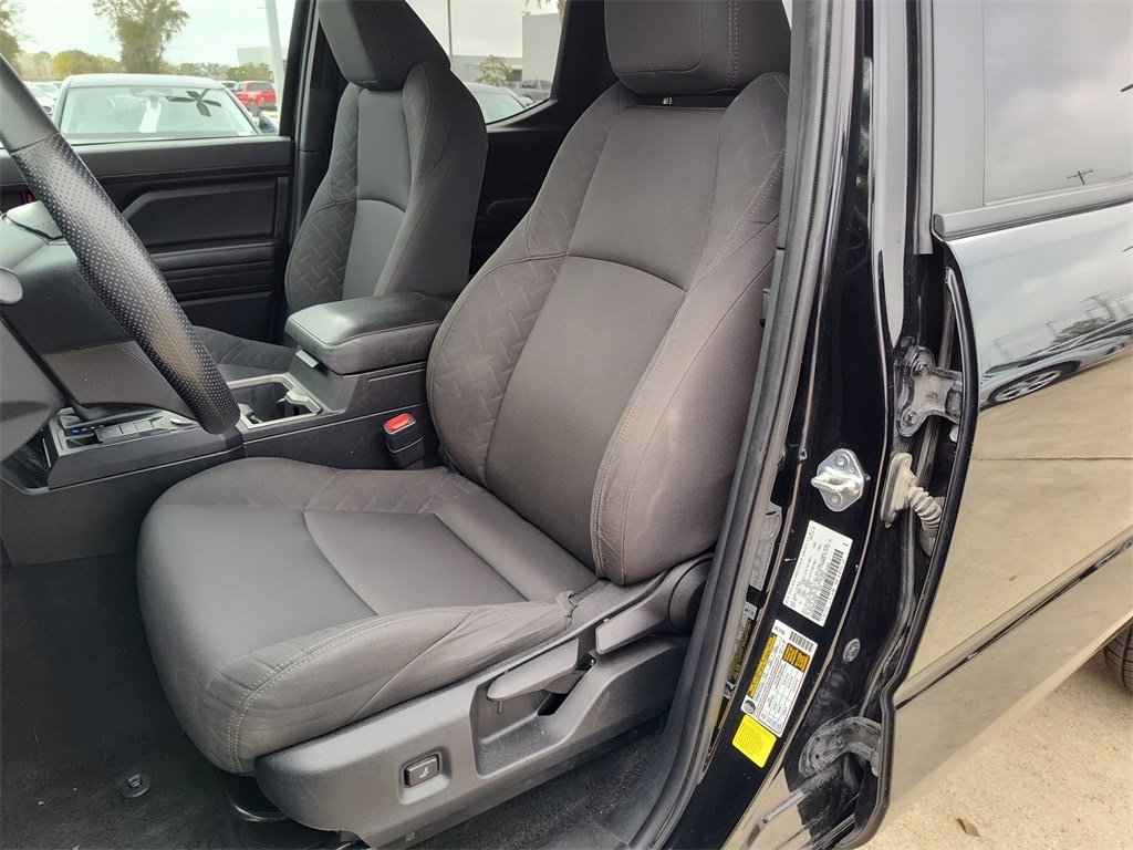 This 2024 Black Toyota Tacoma SR5 RWD is well equipped and includes these features and benefits: 3.583 Axle Ratio, 4-Wheel Disc Brakes, 6 Speakers, ABS brakes, Air Conditioning, Alloy wheels, AM/FM radio: SiriusXM, Anti-whiplash front head restraints, Apple CarPlay/Android Auto, Auto High-beam Headlights, Auto-dimming Rear-View mirror, Brake assist, Bumpers: body-color, Driver door bin, Dual front impact airbags, Dual front side impact airbags, Electronic Stability Control, Emergency communication system: Safety Connect (1-year trial), Exterior Parking Camera Rear, Four wheel independent suspension, Front anti-roll bar, Front Bucket Seats, Front Center Armrest, Front fog lights, Front reading lights, Fully automatic headlights, Heated door mirrors, Illuminated entry, Knee airbag, Low tire pressure warning, Occupant sensing airbag, Outside temperature display, Overhead airbag, Overhead console, Panic alarm, Passenger door bin, Power door mirrors, Power steering, Power windows, Radio: 8" Toyota Audio Multimedia, Rear step bumper, Rear window defroster, Remote keyless entry, Speed control, Speed-sensing steering, Split folding rear seat, Steering wheel mounted audio controls, Tachometer, Telescoping steering wheel, Tilt steering wheel, Traction control, Trip computer, Variably intermittent wipers, and Wheels: 17" Styled Alloy.